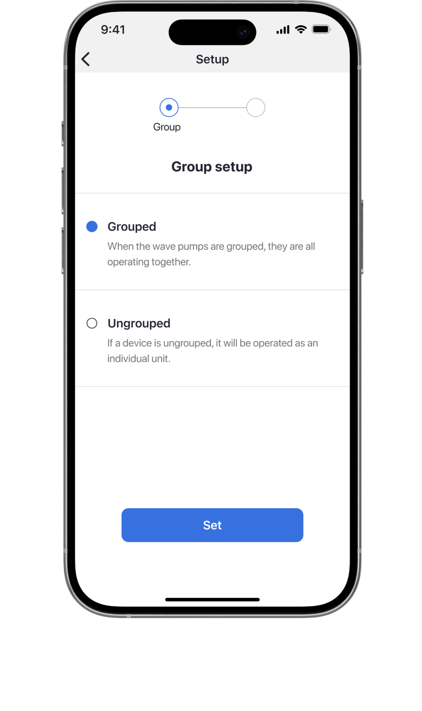 ReefWave-Pumpen können in Gruppen zusammengefasst werden, sodass Sie mehrere Pumpen als eine einzige, synchronisierte Einheit betreiben können.