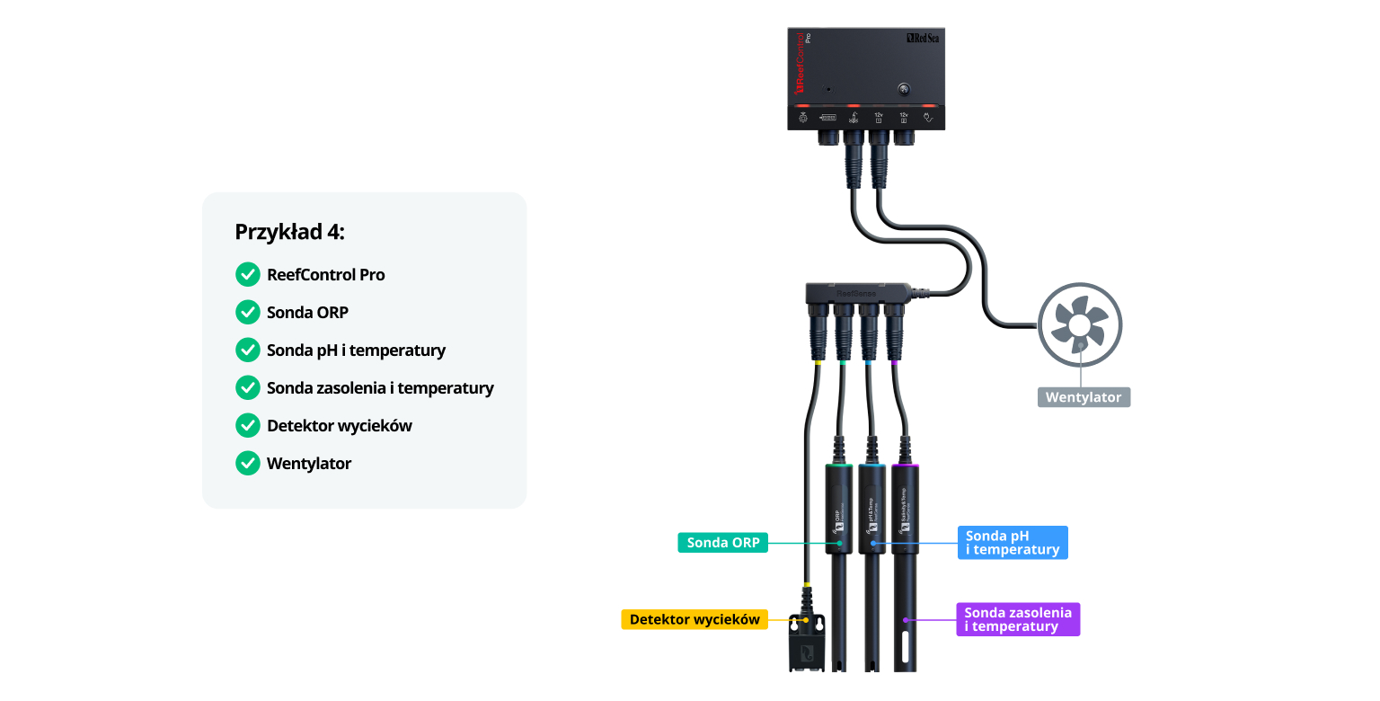 Może być również skonfigurowany do automatycznego sterowania urządzeniami DC, takimi jak wentylatory chłodzące, lub urządzeniami AC, takimi jak grzałki – przy użyciu modułu ReefControl Power.