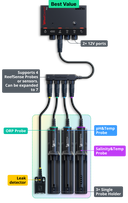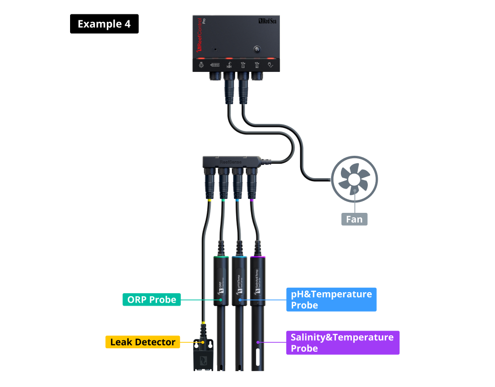 Any combination of the range of ReefSense digital probes/sensors can be connected to the ReefControl, providing you with real-time monitoring, logs and notifications, and can control the onboard dc outlets or the AC sockets of a connected ReefControl Power